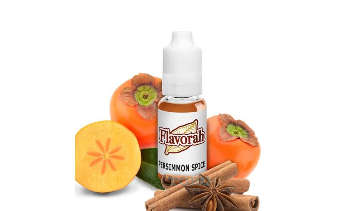 Persimmon Spice — сложный фруктово-перечный аромат от Flavorah. Это уникальный вкус, отдаленно напоминающий смесь из имбиря, яблока и ревеня. Арома превосходно смешивается с другими концентратами. Ее можно использовать для создания пивных, других алкогольных, а также табачных смесей. Рекомендованные пропорции для смешиваяания Persimmon Spice FLV — от 0,5 до 1% (в рецептах).